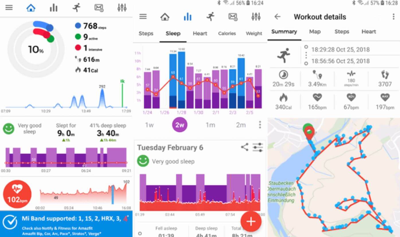 В приложении можно настраивать уведомления для друзей и родственников, смотреть историю графиков пульса, сна, тренировок, а также экспортировать их в другие приложения. Также с его помощью можно создавать собственные циферблаты — в недавнем обновлении появился конструктор циферблатов для Mi Band 5. Приложение бесплатное, но в платной версии доступен тренировочный режим.