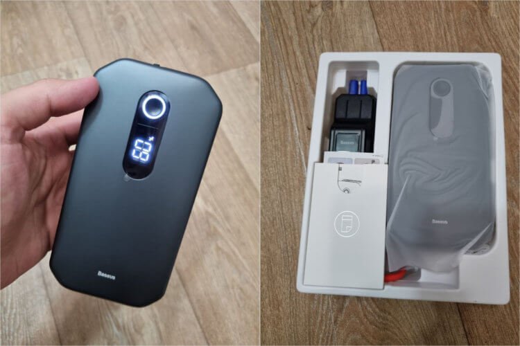 Вот такой прибор от Baseus как раз обладает таким навыком. Он совмещает в себе пауэрбанк на 20 000 мА*ч, чего вам хватит на зарядку всех своих устройств, а также позволяет запустить разрядившийся за ночь или на морозе аккумулятор автомобиля благодаря силе тока в 12 В. А стоит сущие копейки.