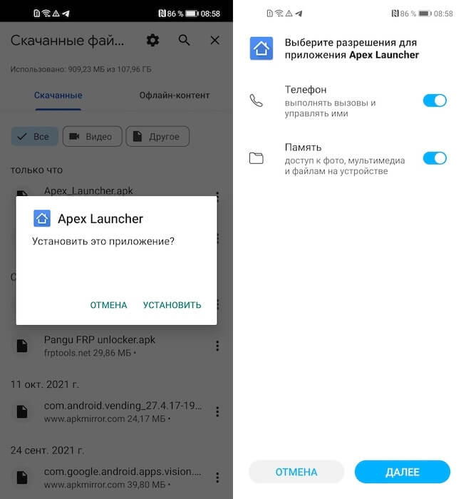 - Перейдите по этой ссылке и установите Apex Launcher.apk;