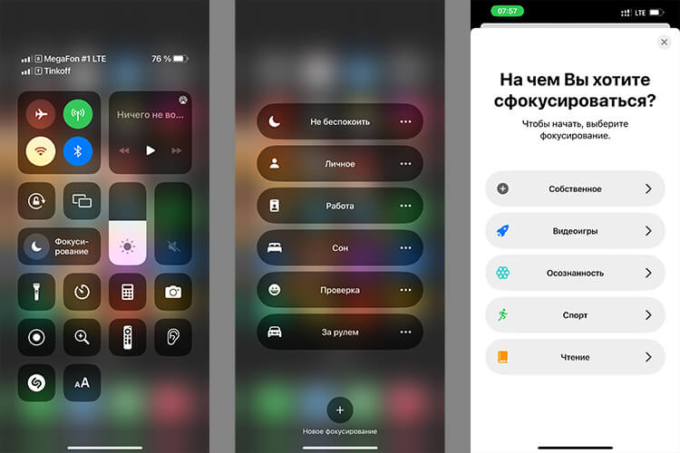 В iPhone уже есть предустановки «Вождение», «Фитнес», «Игры», «Внимательность», «Личные», «Чтение» и «Работа», но вы можете создавать собственные фокусировки по своему усмотрению.