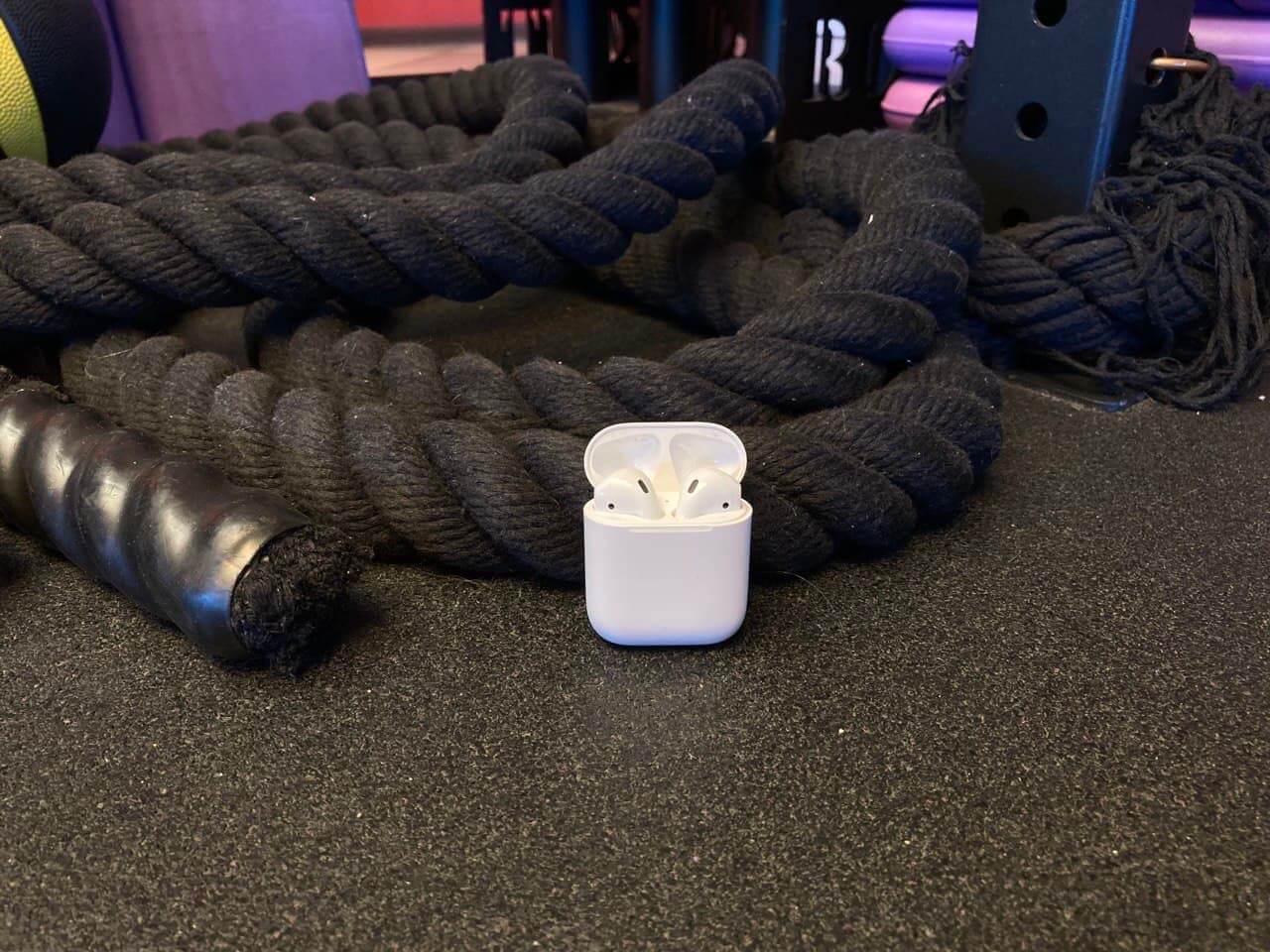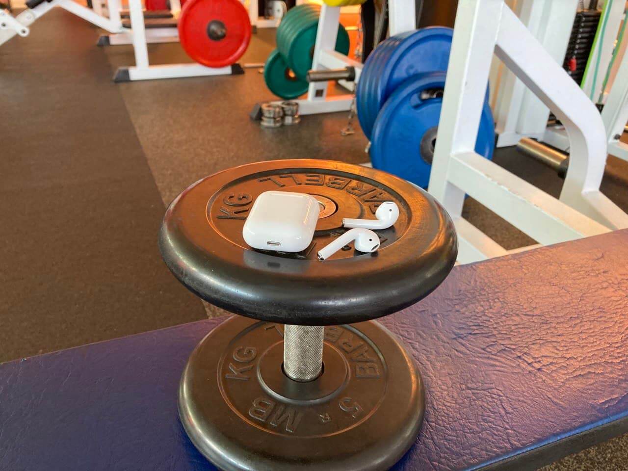 Во время тренировки я предпочитаю держать телефон подальше от себя, чтобы не отвлекаться. Дальность действия Airpods позволяет держать телефон на расстоянии 20 метров. При это, всегда удобно переключать треки в плеере двойным тапом, предварительно назначив действие на каждый наушник. А если кто-то хочет тебя достать разговорами, достаешь один наушник и музыка ставится на паузу.