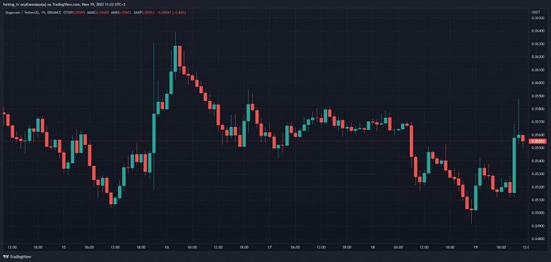 После твита цена мем-криптовалюты в моменте выросла почти на 9% даже на фоне падающего рынка.