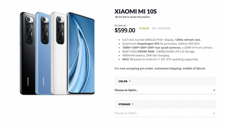 Хитовый Xiaomi Mi 10S уже можно заказать за пределами Китая