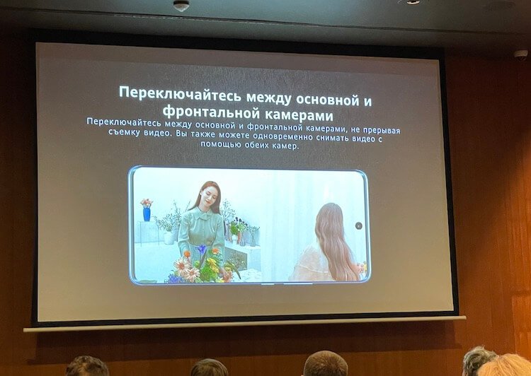 Без применения сторонних приложений можно будет пользоваться сразу несколькими камерами. Смартфон даст возможность снимать видео на основную и фронтальную камеру или на несколько сенсоров основной камеры. Так можно будет добиться интересного эффекта. Например, съемка чего-либо с рассказом и демонстрацией своих эмоций или съемка одного и того же объекта с разных ракурсов.