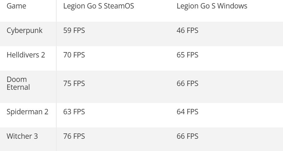 Тесты показывают: запущенные на устройствах со SteamOS игры выдают более высокую и стабильную частоту кадров и могут работать дольше. В случае с 2D-играми разница вообще огромная — например, Dead Cells разряжает батарею Lenovo Legion Go S SteamOS за 6 часов, а аналогичную систему на Windows 11 — всего за 3. В более тяжёлых проектах вроде Cyberpunk 2077 разница не столь критична, но SteamOS и там не уступает.