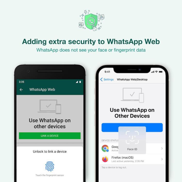 WhatsApp сообщает, что с новой функцией пользователям потребуется аутентифицироваться в своих телефонах при подключении к своим учетным записям в Интернете и приложениях для компьютера.